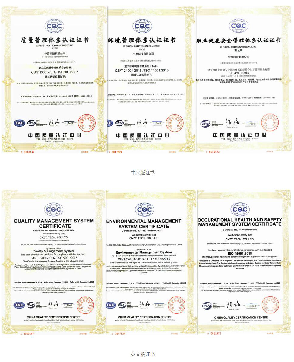 于2019年12月3日,我司迎來了**質(zhì)量認(rèn)證中心**階段審核,接連于12月7日進(jìn)行第二階段審核,經(jīng)過緊張嚴(yán)密的審查,對(duì)我司良好的經(jīng)營情況與現(xiàn)場生產(chǎn)狀況予以確認(rèn),滿足生產(chǎn)條件,給予合格評(píng)定。于2019年12月17日下發(fā)體系證書。