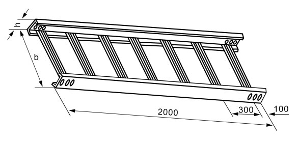 高度h為60、100時,每端各6只連接孔;高度h為150時,每端各12只連接孔;T1-01橋架備有護罩,需配護罩須在訂貨時按型號說明。 |