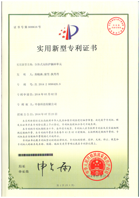 實(shí)用新型專(zhuān)利證書(shū)
