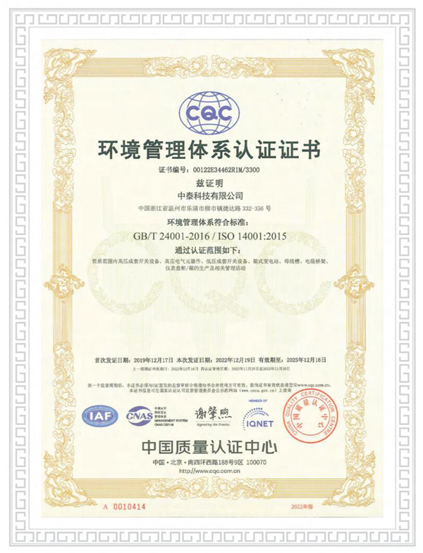 環(huán)境管理體系認(rèn)證證書(shū)